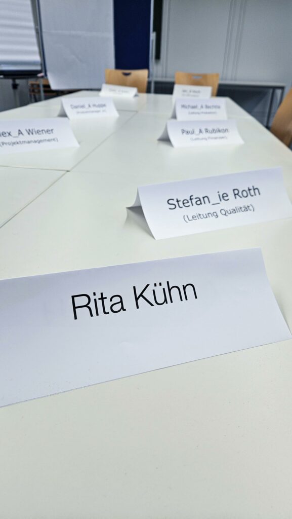 In dem fiktive Familienunternehmen „Kühn Next GmbH“ erlebten die Teilnehmenden die Komplexität zwischen einem Projekt unter Zeitdruck, verbunden mit Konflikten, Beziehungsdynamiken und Verantwortung. In jeder der 4 Spielphasen erlebten die Teilnehmenden neue Facetten von Führung. Das Spiel schafft ein intensives Lernfeld, in dem Zusammenarbeit, Verantwortung und Kommunikation unmittelbar spürbar werden.